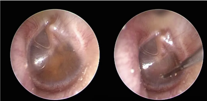 图1 鼓膜穿刺术前后